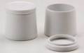 ブルーと白マットの2色があります。ポット・シュガー・クリーマーの美しい三段重ねで収納ができます。