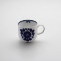 阪本やすきさんのデザインによる、プレーンなかたちの皿・ボール・ポットやカップ類のラインナップに、ひとつひとつ手描きの鮮やかなブルーの花柄を配したブルームシリーズ。
