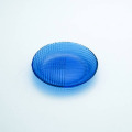 1983年にデザインしたロングセラー・ベストセラー「シェルシリーズ」のガラス版です。深いブルーの美しい色合いが特徴です。1985年に生産開始し途中生産中止していましたが、2002年に数量限定で再生産しました。レリーフが磁器と違って皿の裏面に入っています。それが透けて見えきれいな模様として光っています。深い彫りなのですが、裏面にあるため汚れが付いたりの心配はありません。ガラスのタンブラーと同じ透明のガラスです。